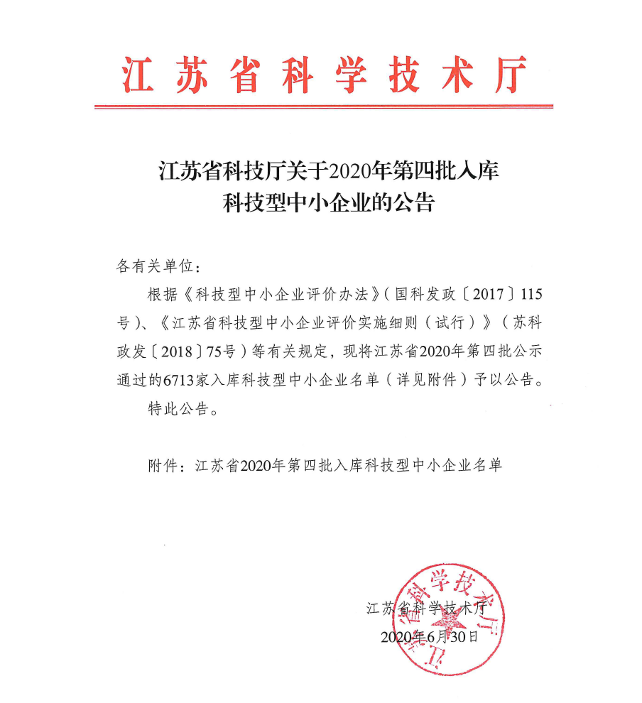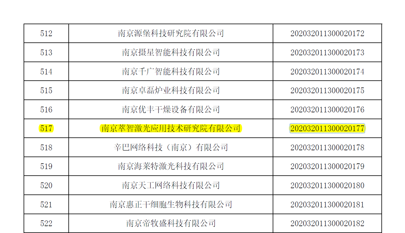 近日,南京萃智激光应用技术研究院有限公司顺利通过江苏省科学技术厅审核,成功获得由江苏省科学技术厅认定的“江苏省科技型中小企业”称号。