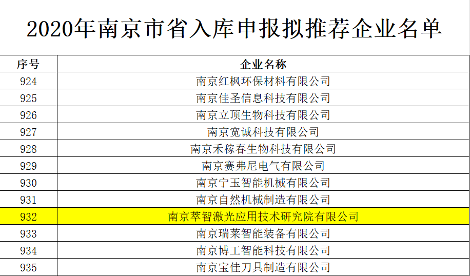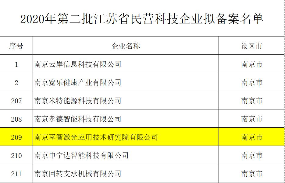 近日,南京萃智激光应用技术研究院有限公司通过“江苏省民营科技企业”、“江苏省高新技术企业培育库”的严格评审,双双公示啦!